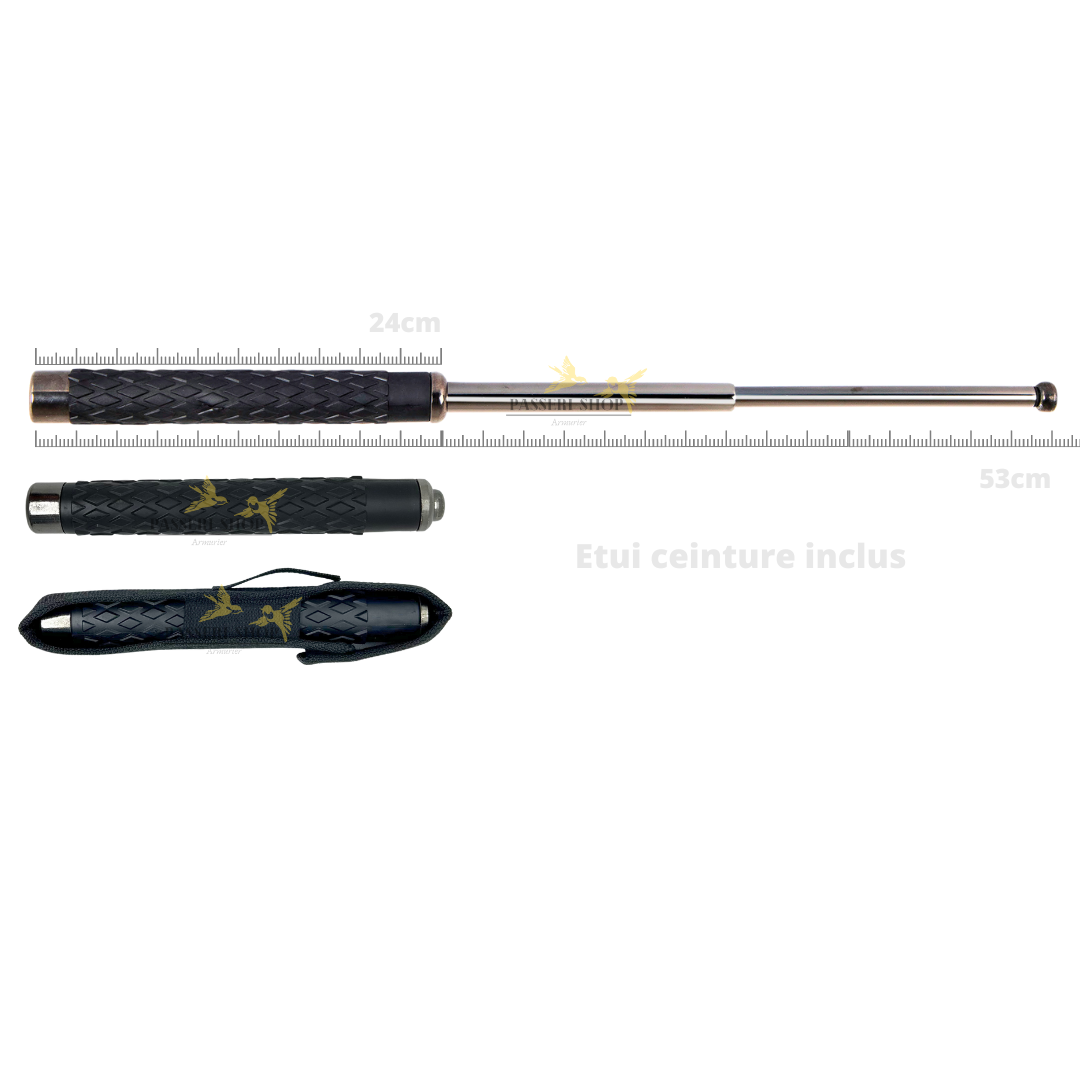 – Contenu : Matraque télescopique 53cm et étui ceinture